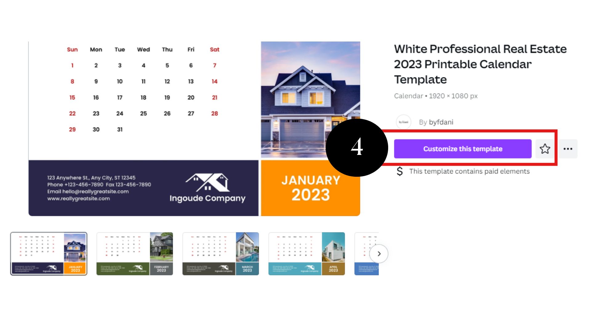 After choosing your favorite calendar template, personalize it to suit your preferences and real estate business details, like your company logo and contact details. Do this by clicking the “Customize this Template” button.