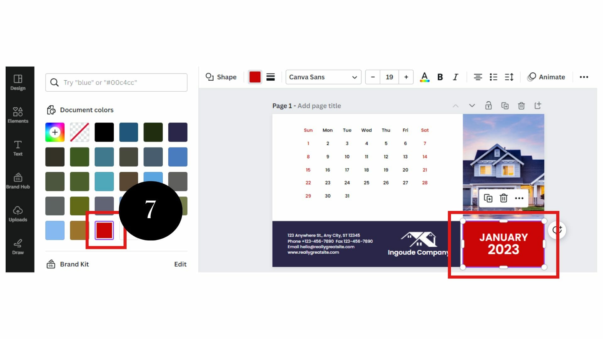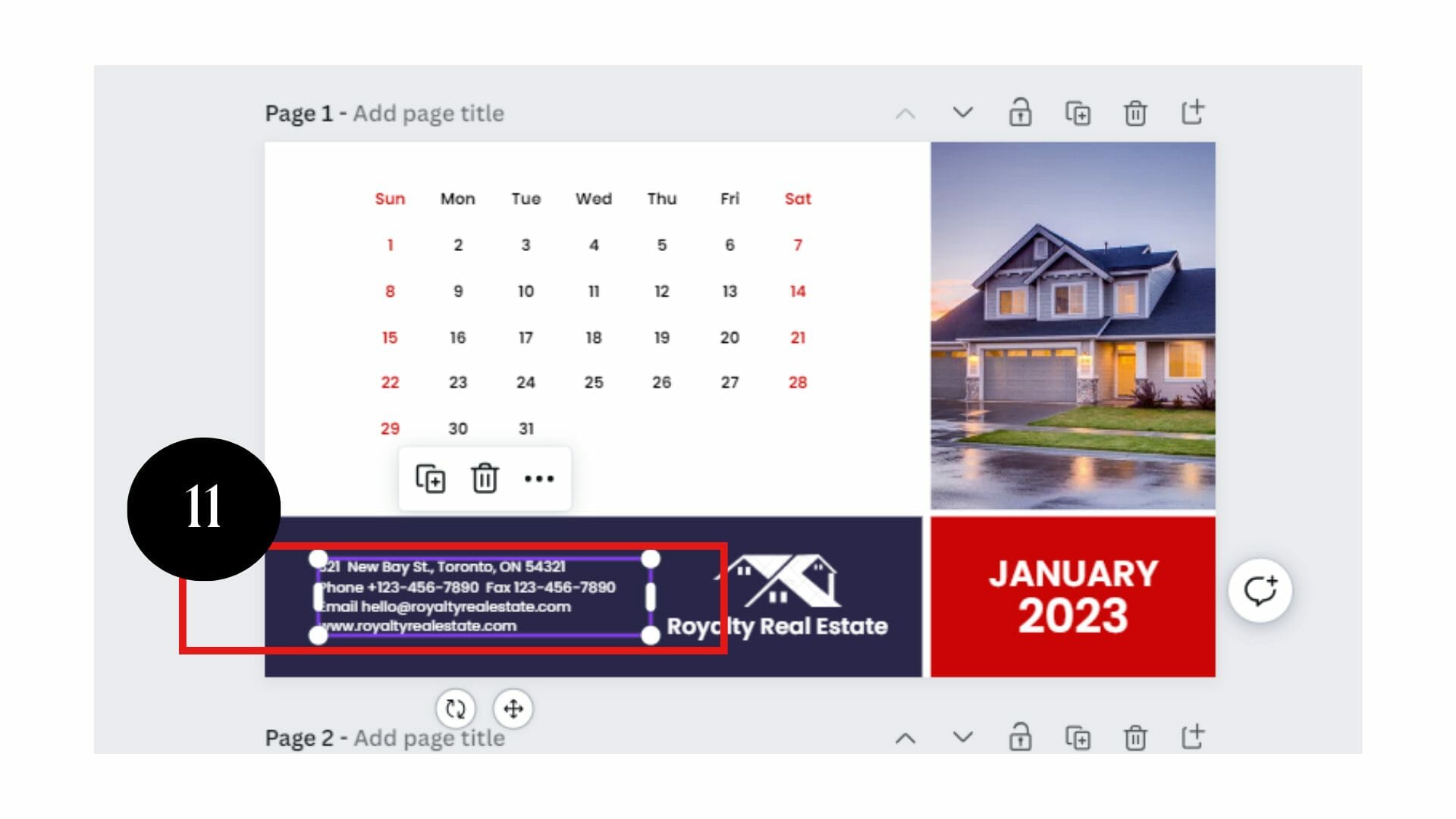 In this step, you can add your company logo and contact information. Check out our customizable real estate logo template if you still need a logo. Place your logo in an area that doesn’t overpower the calendar design.